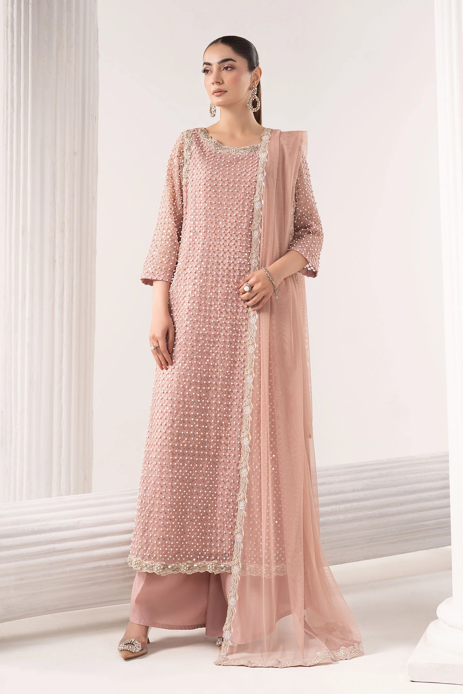 Pearl Embellished Gathered Sleeves With Embroidered Border & Loops Detailing