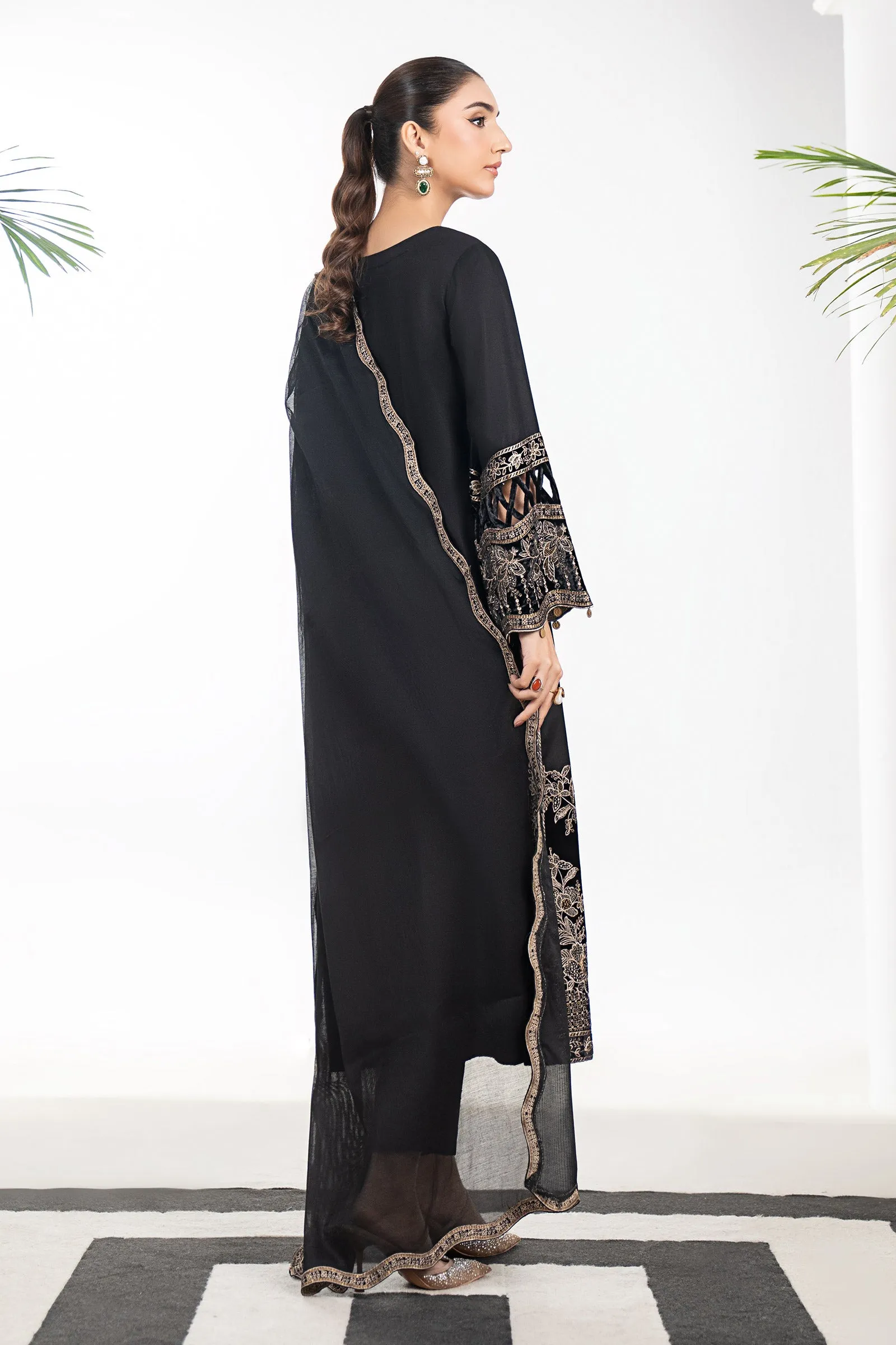 Dyed Sleeves With Velvet Loops Detailing & Embroidered Border