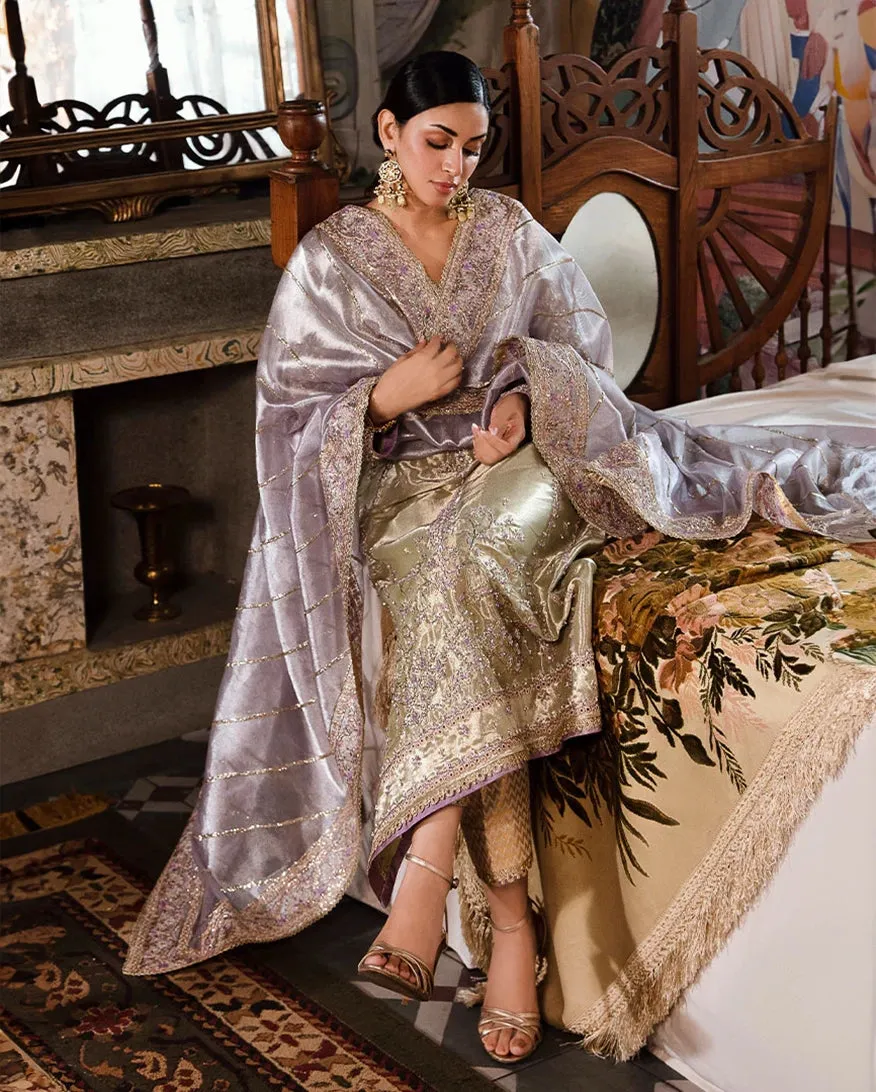 Experience the allure of our silk masterpiece intricately detailed with stunning beadwork and meticulous threadwork. Each stitch reflects artisanal craftsmanship, weaving a narrative of elegance and sophistication, adding a touch of timeless charm to your ensemble.