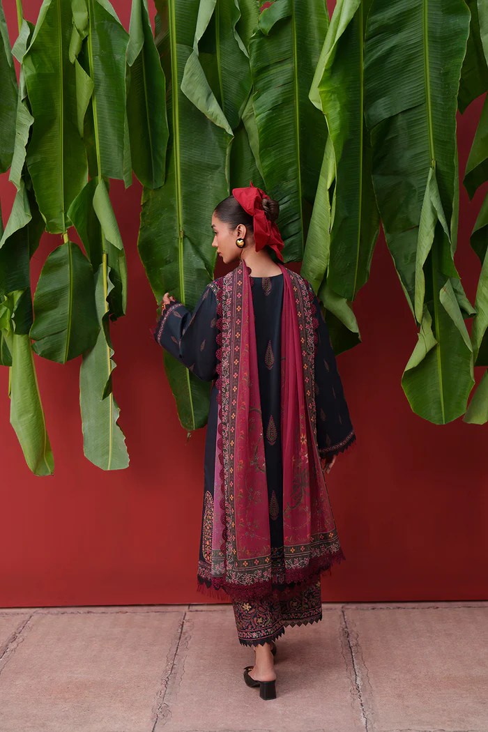 DESCRIPTION: This beautiful 3-piece unstitched lawn outfit features intricate detailing and is gracefully paired with a soft, flowy chiffon dupatta.