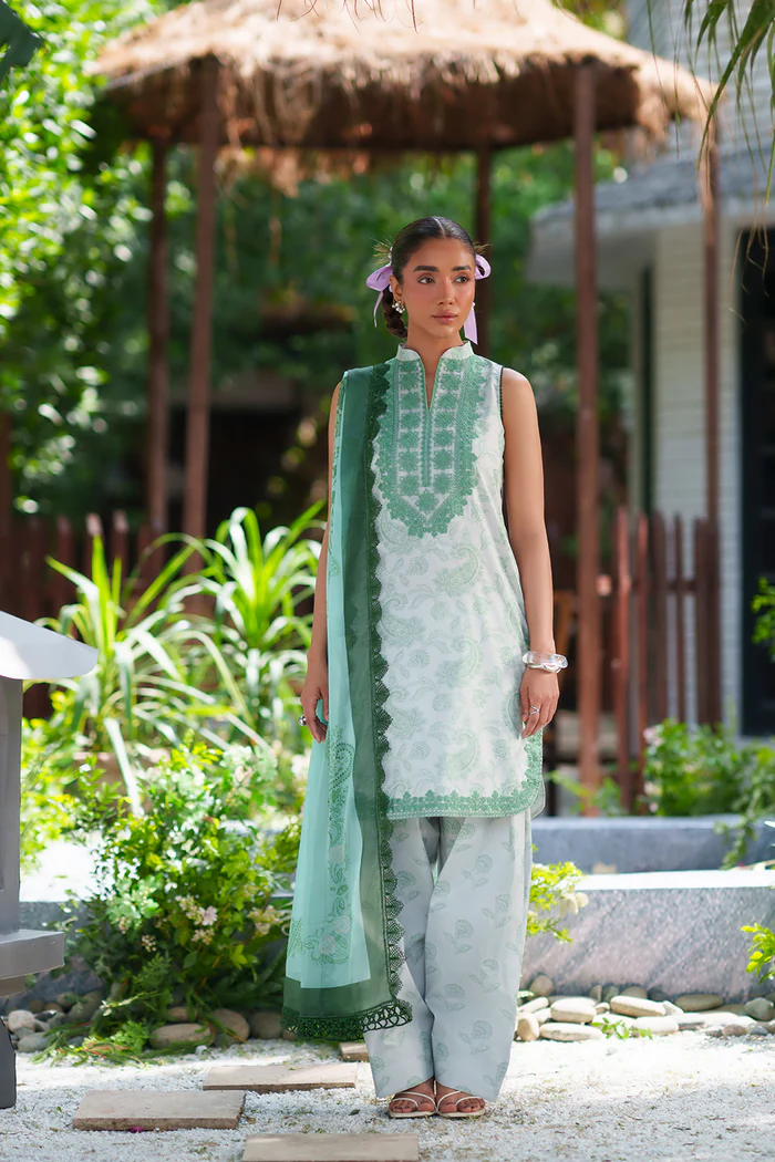 DESCRIPTION: This beautiful 3-piece unstitched lawn outfit features intricate detailing and is gracefully paired with a soft, flowy chiffon dupatta.