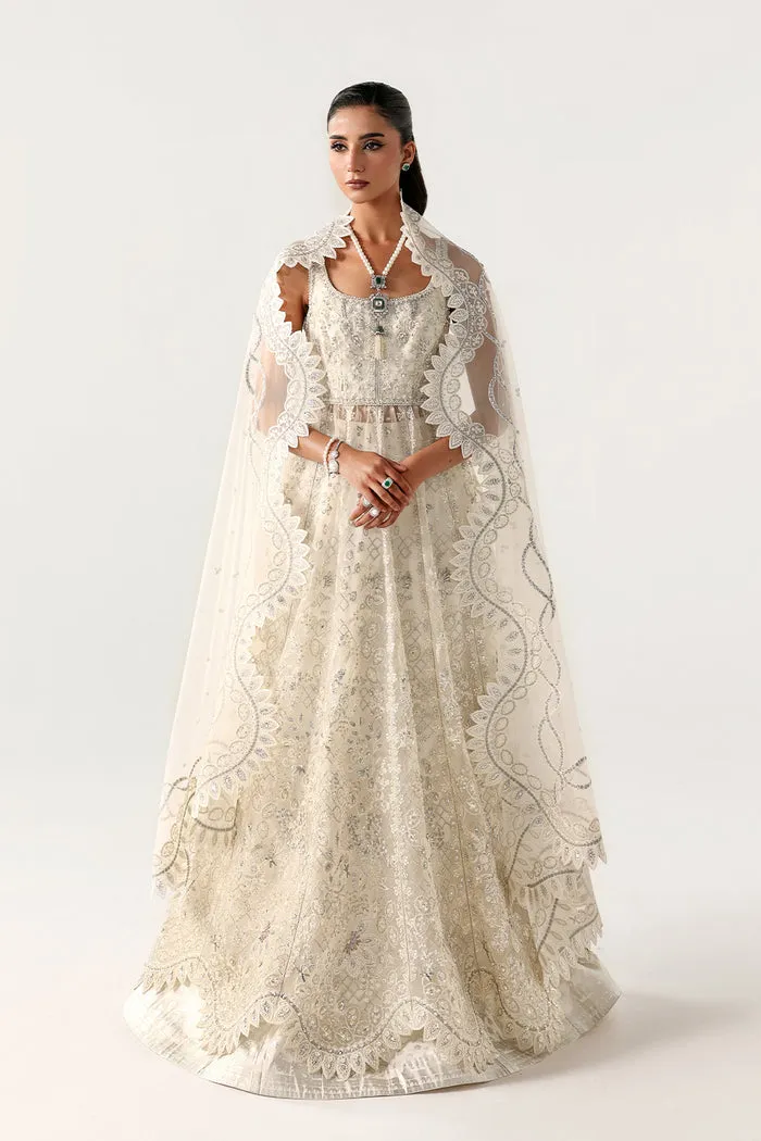DESCRIPTION: An ethereal creation from Saira Rizwan, this all-white ensemble features a flowing long peshwas crafted in a luxurious blend of silk and organza. Adorned with intricate silver and white embellishment and embroidery throughout, the design exudes refined elegance and timeless charm. This three-piece stitched outfit is a graceful expression of modern sophistication with classic appeal.