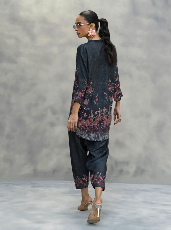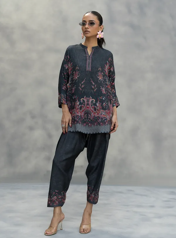 The boss energy co-ord is crafted from soft viscose in a rich, dark base. It features a striking pattern of fiery reds and deep accents, giving you total Vintage Vixen energy. The short, relaxed-fit tunic and comfortable slouchy pants make this a fit you can live in, while the stunning print ensures you’re always serving Dark Aesthetic realness.